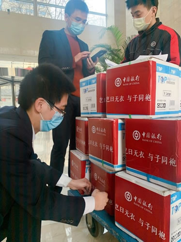 一方有難,八方支援。根據(jù)中國銀行總行統(tǒng)一部署,中行北京市分行立即行動,多部門協(xié)作成立物資捐贈專項(xiàng)小組,積極聯(lián)系國際貿(mào)易公司尋找貨源。