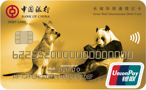 The Great Wall International Dual Currency EMV UnionPay Debit Card (GWI Debit Card) is a Bank of China issued UnionPay Debit Card which can be linked to either or both an AUD and a CNY Bank of China (Australia) Limited Account. The GWI Debit Card provides Bank of China customers with low cost, convenient payment and cash services in Australia and unlocks easy and low cost payment and cash service in China.