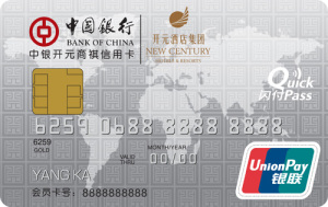 中銀開元商祺信用卡,擁有中國銀行信用卡和開元酒店貴賓會員卡雙重身份,可超值享受銀行和酒店雙方的優(yōu)惠和服務,體驗雙重積分的快樂。