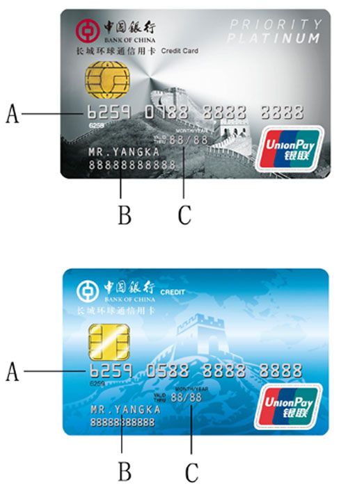 在您提交的信用卡申請通過我行審批后,我們會盡快將卡片郵寄至您在申請信息中填寫的卡函郵寄地址,您收到的信用卡卡片具有以下表面特征。