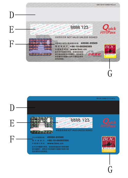 E、個人簽名欄:拿到卡片后,請您立即簽署您慣用的簽名式樣(建議使用油性簽字筆或圓珠筆)。請在之后用卡交易時也簽署相同式樣的簽名。