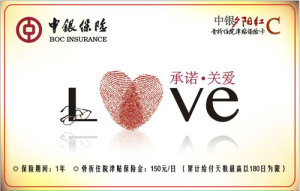 | 骨折津貼保險卡C | 150元/日 | 800元 | 50周歲(含)以上 | 1年 | 《中銀保險有限公司老年人骨折住院護理津貼保險條款》 |