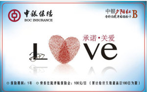 | 骨折津貼保險卡A | 50元/日 | 300元 | 50周歲(含)以上 | 1年 | 《中銀保險有限公司老年人骨折住院護理津貼保險條款》 |