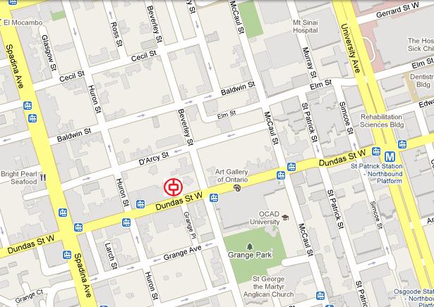 公交路線:乘多倫多1號(hào)線地鐵到St. Patrick站后,轉(zhuǎn)乘 505電車往西至Dundas Street/Beverley Street 交叉路口下車往西方向走。分行就在Beverley Street和Huron Street 之間的Dundas Street的北邊。