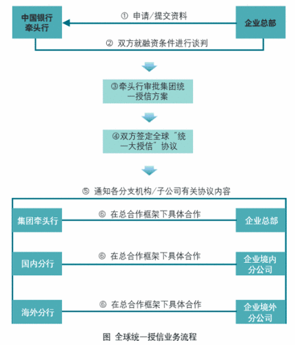 全球統(tǒng)一授信是對傳統(tǒng)授信產(chǎn)品使用范圍的延伸,突出功能是能夠滿足企業(yè)境外分支機構(gòu)的融資需求。具體來說,全球統(tǒng)一授信就是根據(jù)企業(yè)跨境發(fā)展的需求,憑借中國銀行廣泛的海外機構(gòu)網(wǎng)絡(luò),為企業(yè)境內(nèi)外分支機構(gòu)提供整體性融資方案。