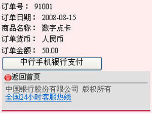 您在我行手機(jī)商城或手機(jī)購(gòu)物網(wǎng)站選定商品,請(qǐng)選擇中行手機(jī)支付。