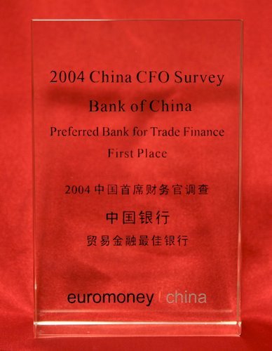 In the July 2004 issue of the Euromoney, Bank of China was named as the "Preferred Bank for Trade Finance - First Place".