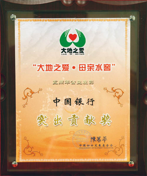 The Fifth Anniversary Award Presentation Ceremony for "Moving Mothers - Love of the Earth, Water Cellars for Mothers" was jointly held by the All-China Women's Federation and China Women's Development Foundation in June 2006. Bank of China won the Outstanding Contribution Award for "Love of the Earth, Water Cellars for Mothers", and Li Lihui, President of the bank, was honored with the title of Star of Charity for the same project.