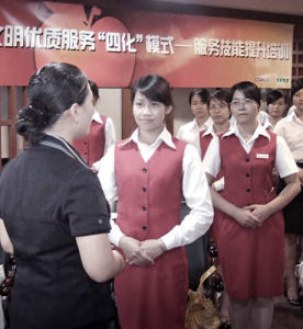 Picture on the left: Bank of China's Olympic service skill training