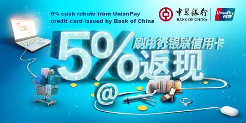 5% cash rebate from UnionPay credit card issued by Bank of China