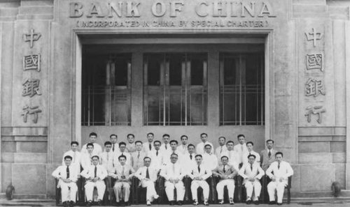 圖為開業(yè)當(dāng)日新加坡中行員工在位于絲絲街辦公大樓前的合影。該大樓是中行在新加坡第一個(gè)行址