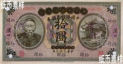 李鴻章像兌換券拾圓券(1912年發(fā)行漢口地名)