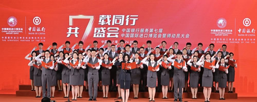▲ 9月26日,中國(guó)銀行在國(guó)家會(huì)展中心(上海)召開(kāi)“七載同行·共‘七’盛會(huì)——服務(wù)第七屆中國(guó)國(guó)際進(jìn)口博覽會(huì)誓師動(dòng)員大會(huì)”。