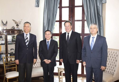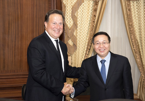 6月4日,中國銀行董事長陳四清在巴拿馬城拜會巴拿馬總統(tǒng)胡安·卡洛斯·巴雷拉·羅德里格斯(Juan Carlos Varela Rodríguez)。中國駐巴拿馬大使魏強、商務(wù)參贊王建一同參加。