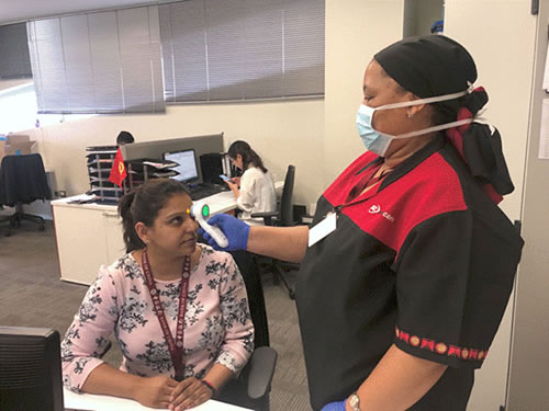 圖為中行約翰內(nèi)斯堡分行每日定時(shí)為員工測(cè)量體溫