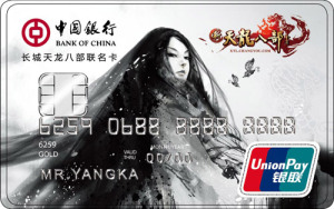 中國(guó)銀行攜手國(guó)內(nèi)三大網(wǎng)絡(luò)游戲公司之一的搜狐暢游,推出以游戲《新天龍八部》為主題的聯(lián)名卡產(chǎn)品,以網(wǎng)絡(luò)游戲用戶、年輕群體為主推群體進(jìn)行推廣。
