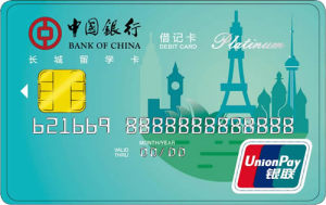 長城留學借記卡(簡稱:長城留學卡)是中國銀行發(fā)行的銀聯(lián)品牌、具有人民幣賬戶及美元、澳門元、歐元、港幣等多種外幣賬戶的白金芯片卡,且是為留學人員量身定制的專屬借記卡。