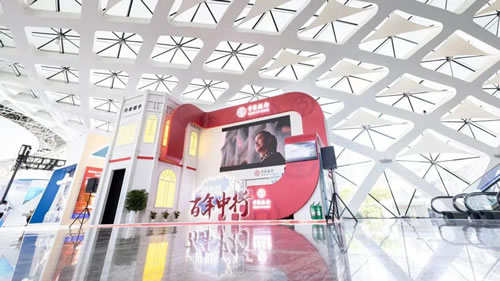 到達(dá)登錄廳,首先可以來“百年中行品牌形象展區(qū)”逛逛。在延續(xù)首屆消博會吸睛無數(shù)的復(fù)古騎樓造型基礎(chǔ)上,進(jìn)一步加入高科技元素,體現(xiàn)百年來傳統(tǒng)與現(xiàn)代的交融,中行紅的絲綢連接古今,從海上絲綢之路到海南自貿(mào)港建設(shè),中行一直都在。