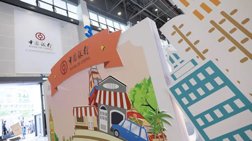 除了登錄廳和迎賓廳的兩大主展區(qū)外,在會展中心的各個展館里,還星羅棋布地分散著中行的五個主題打卡點(diǎn),不僅可以和消博會吉祥物元元宵宵的合影互動,還有中國銀行特色場景等你來打卡。