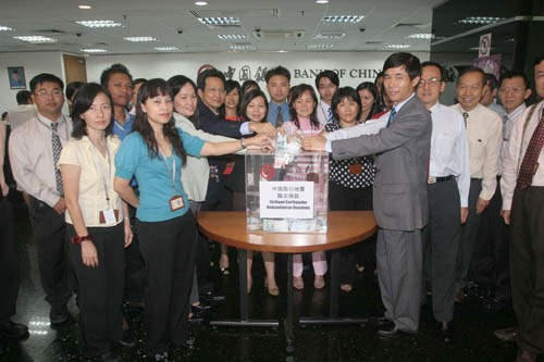 After the devastating earthquake hit Wenchuan on May 12, 2008, over 600 Bank of China overseas branches have become the windows for collecting donations from all walks of life abroad, including overseas Chinese, foreign friends and overseas employees of Chinese-funded institutions. The money raised in USD, GBP, EUR, JPY, AUD, MYR, HKD, MOP and so on are continuously transferred to the earthquake-stricken areas via these overseas branches.
