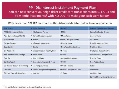 - The Bank is not the manufacturer or supplier (or agent thereof) of any of the product(s) or service(s) purchased using IPP. The Bank shall not be in anyway liable, for any claims, injury, expense, loss or damage brought or incurred by any party whosoever, or for any other matter arising from or in connection with the use of the product(s) or supply or any service(s) purchased under IPP. Any complaints or comments in relation to any product(s) or service(s) purchased or any accompanying terms and conditions are to be directed to the relevant manufacturer or supplier.